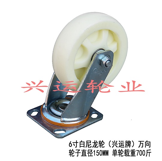 6寸白尼龍輪(興運牌)萬向