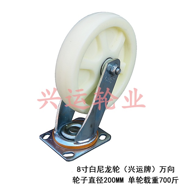 8寸白尼龍輪(興運牌)萬向